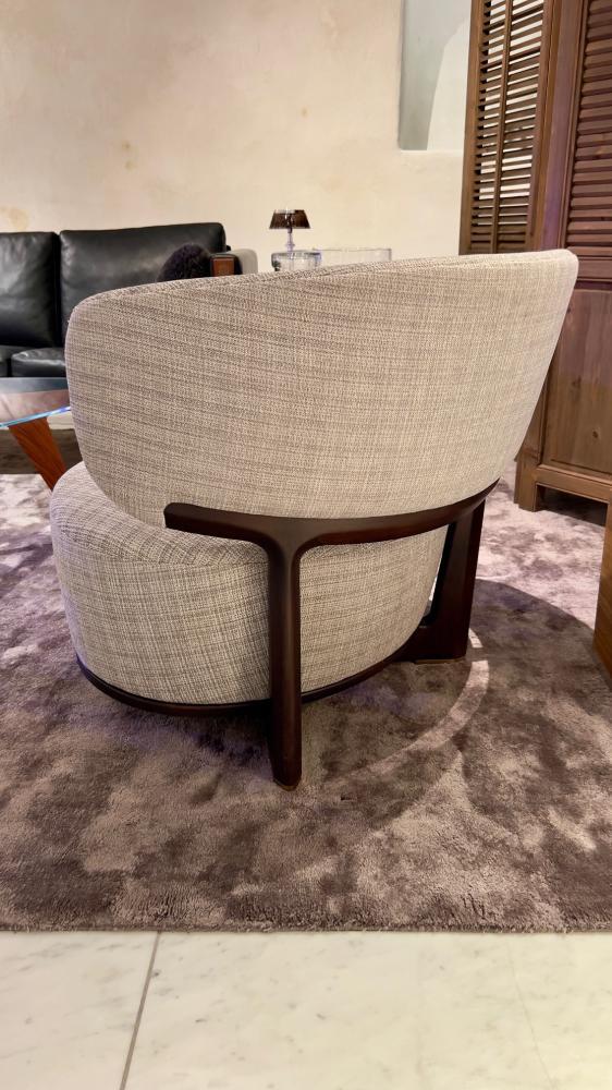 Nussbaumholz moka, Stoff Grisaille 002 B 80 x T 83 x H 74/40 cm Ausstellungsmodell mit leichten Gebrauchsspuren