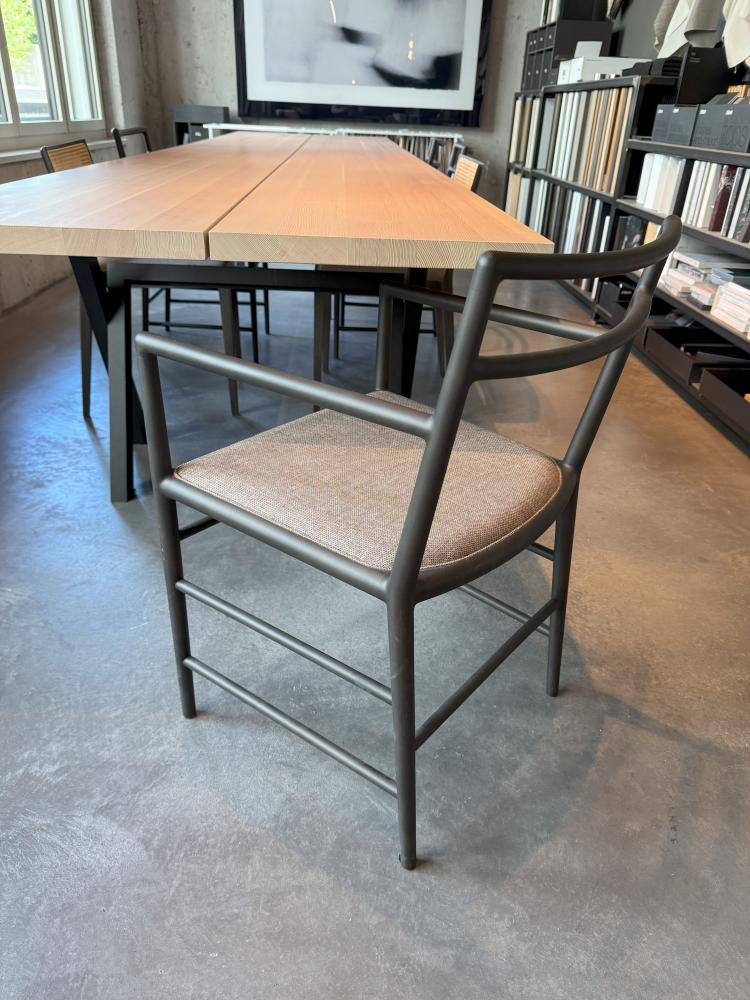 Massivholzbuchenstuhl mit Armlehne kohlengrau gefärbt, endbehandelt mit transparentem Lack
