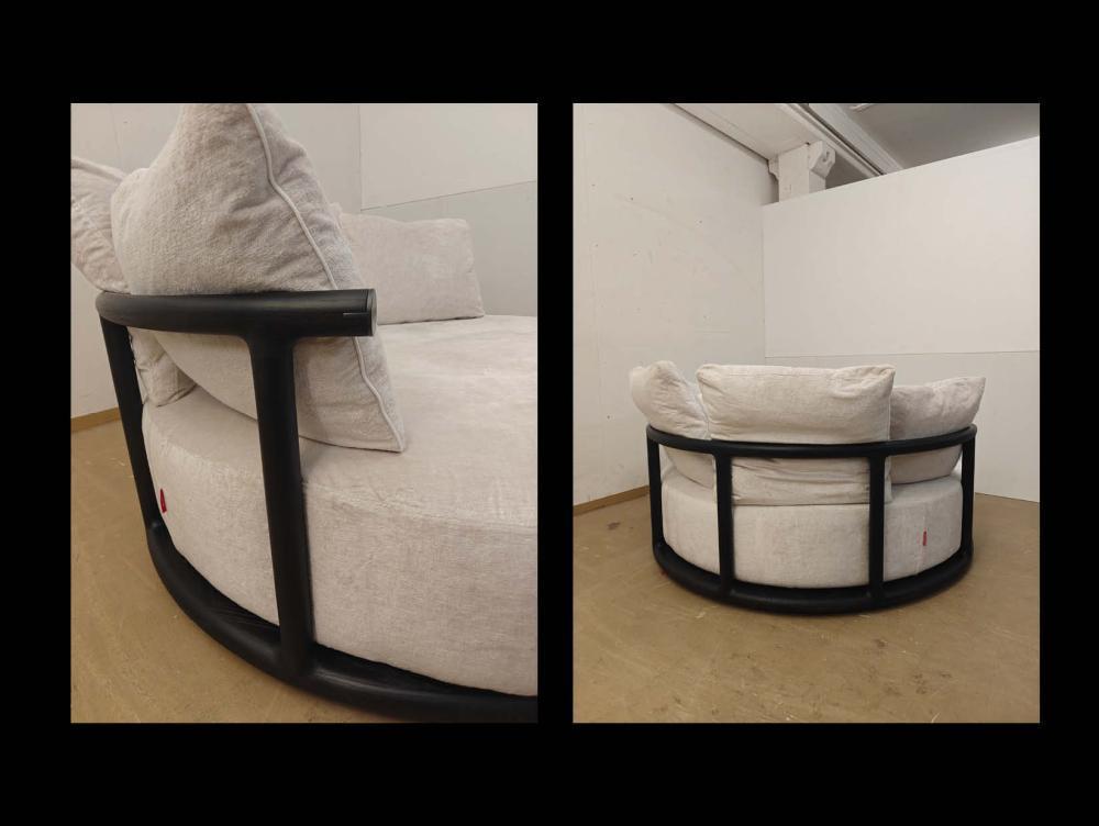 Kuschelig. Stylisch. Einladend. // Solitär-Sofainsel in Stofffarbe Sand – weich, gemütlich & mit hohem Wohlfühlfaktor. ✔️ Kuschelweicher Stoff ✔️ Gestell in Esche braun gebeizt ✔️ Inkl. Kissen laut Foto Grösse Ø160cm // Ein echtes Highlight mit dem gewissen Etwas – ideal zum Fläzen, Relaxen & Wohlfühlen. >>> Selbstabholung oder Lieferung; die Lieferkosten erfolgen nach Vereinbarung – Dieses Modell kann nach Terminvereinbarung besichtigt werden. Teilen Sie uns Ihren Wunschtermin mit.