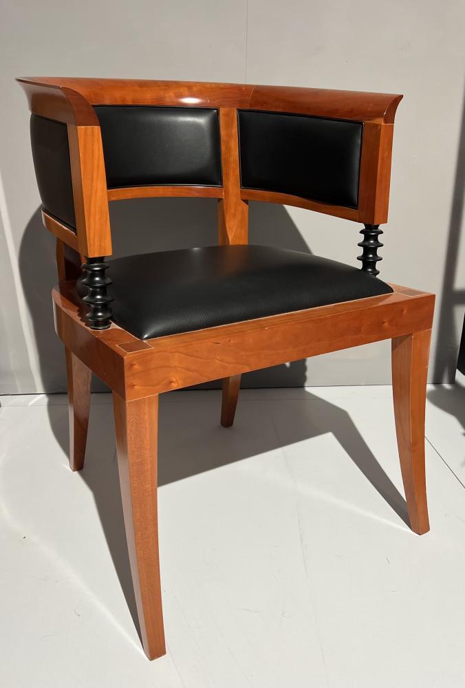 Ledersessel mit gedrehten Armlehnendetails, Bezug Leder schwarz, Gestell Buche dunkel gebeizt