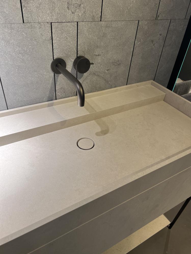 Aufsatzwaschbecken RIG aus MDI Bihara mit Stopfen für Ablaufgarnitur in Ausführung des Waschbeckens