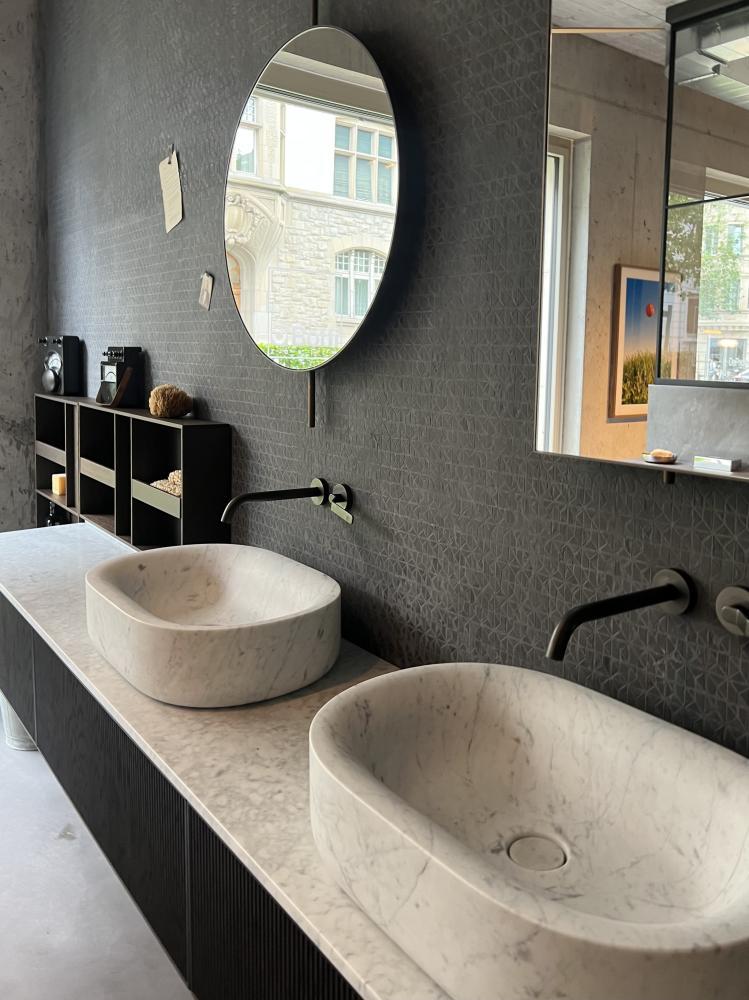 2 ROUND SABBIA STONE Waschbecken aus massivem Marmor ohne Überlauf