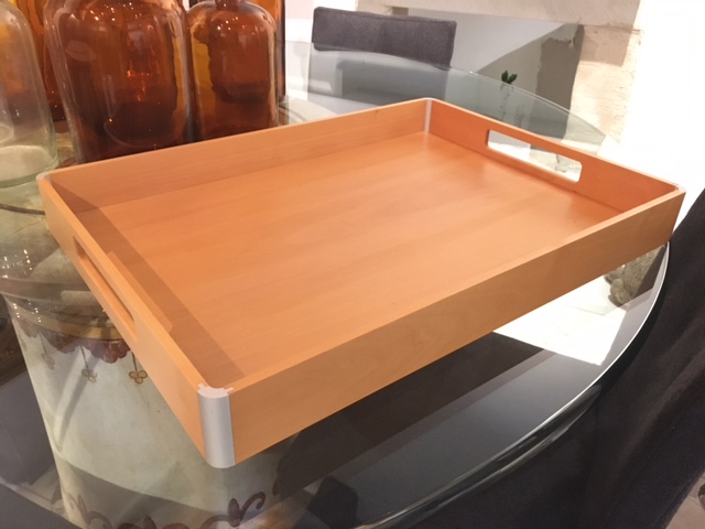 Serviertablett B 55 x T 40 x H 6 cm Ahorn gedämpft, Aluminium Ausstellungsmodell mit leichten Gebrauchsspuren