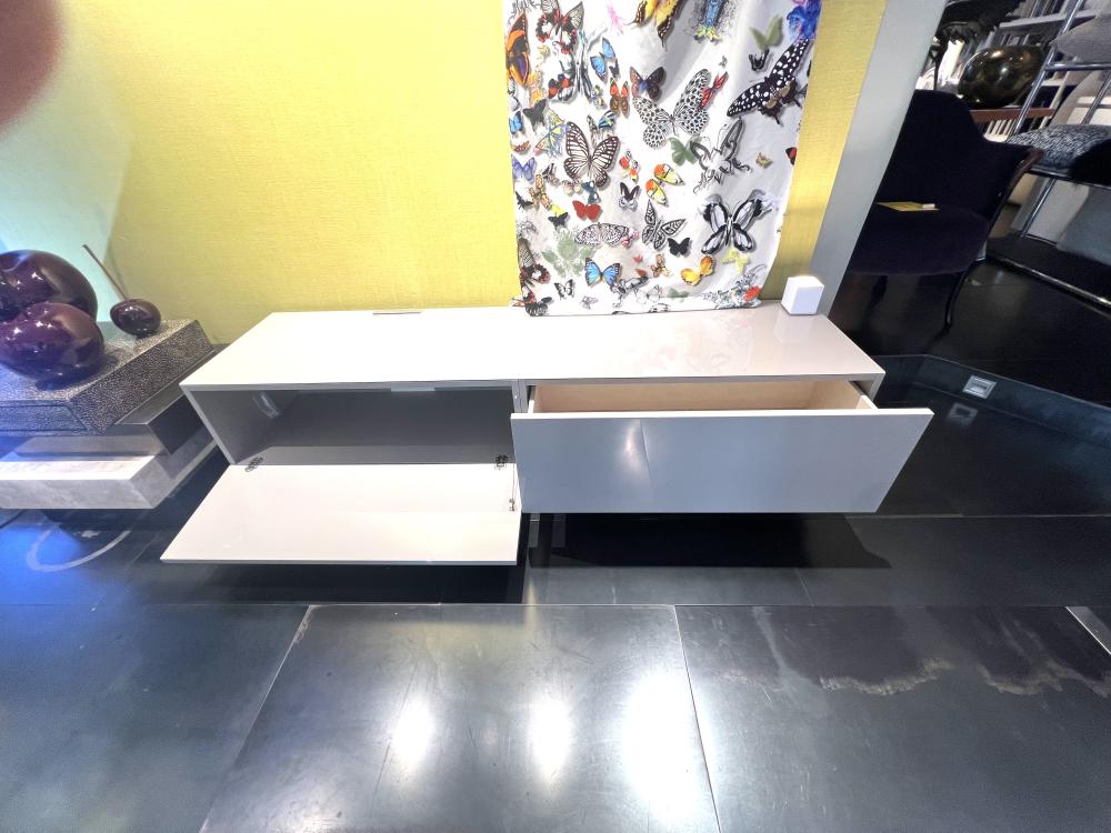 Sideboard mit 1 Schublade, 1 Klappe (für TV geeignet mit Kabelzugang, Hochglanz graubeige, 190 x 50 x 50 cm