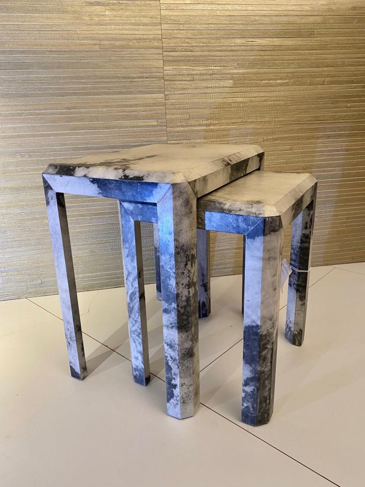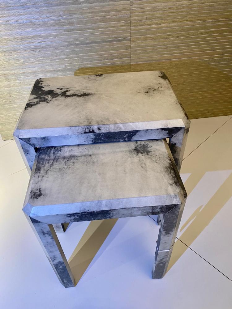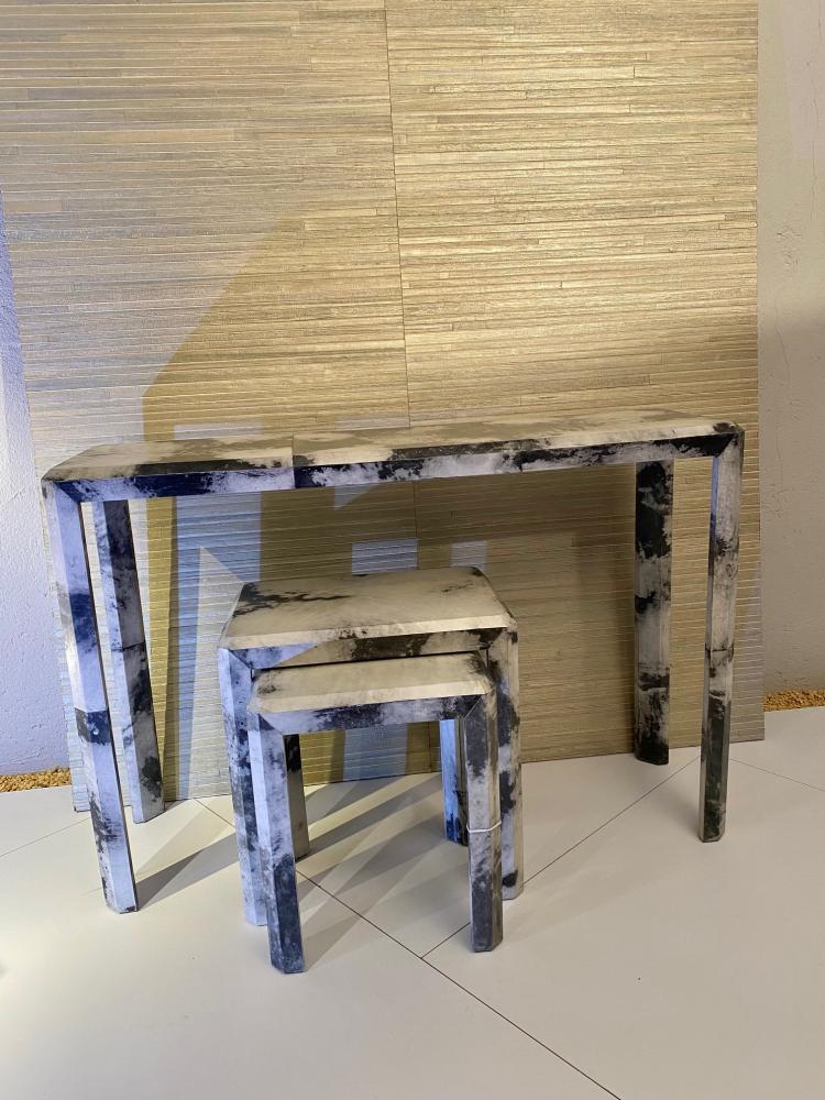Sideboard/Konsole mit 2 Beistelltischen, Holz kaschiert mit Ziegenleder, 130 x 40 x 80 cm hoch